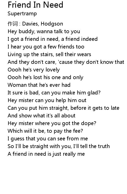 | I got a friend in need, a friend indeed | |
