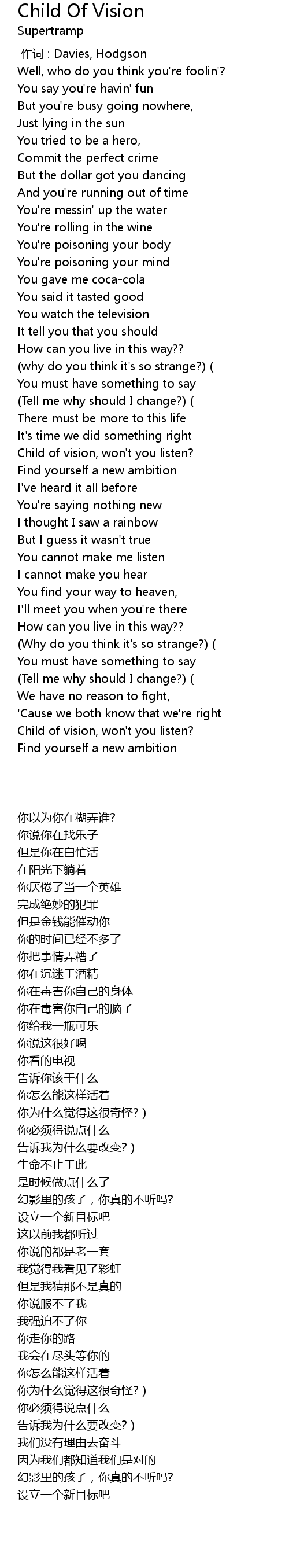 | [00:00.00] | 作词 : Davies, Hodgson |
