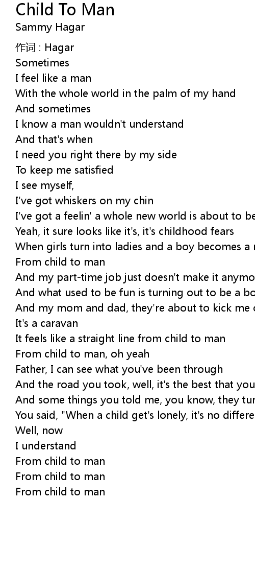 | You said, "When a child get's lonely, it's no different than a man" | |