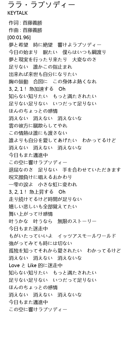 | [00:02.35] | 夢と希望 時に絶望 響けよラプソディー |