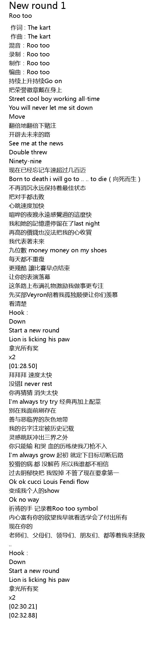 | [01:52.97] | 你只能输 和哭 血的历练使我刀枪不入 |