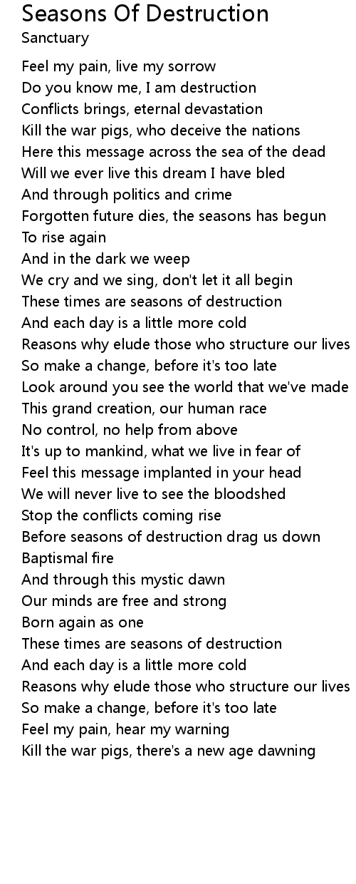 Before seasons of destruction drag us down |