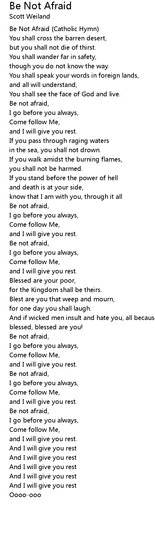 Be not afraid, |