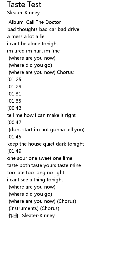 | [00:00.00] | 作曲 : Sleater-Kinney |