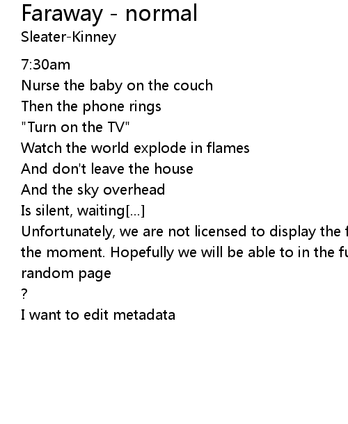 | Unfortunately, we are not licensed to display the full lyrics for this song at the moment. Hopefully we will be able to in the future. Until then, how about a | |