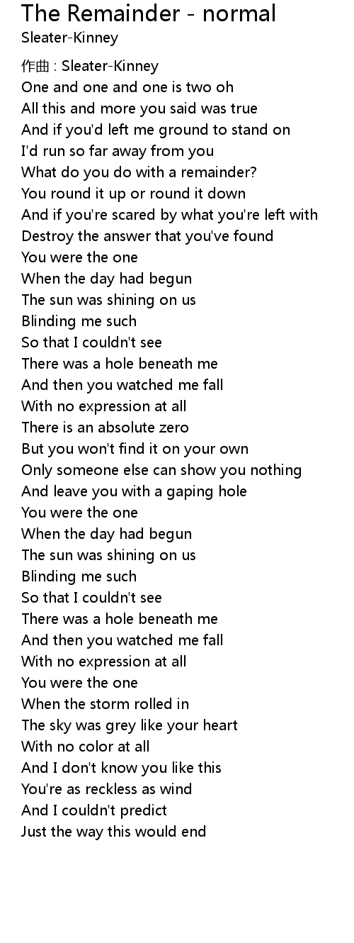 | Song | The Remainder - normal |