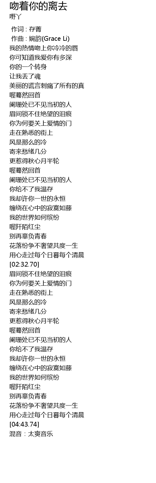 | [03:02.12] | 眉间锁不住绝望的泪痕 |