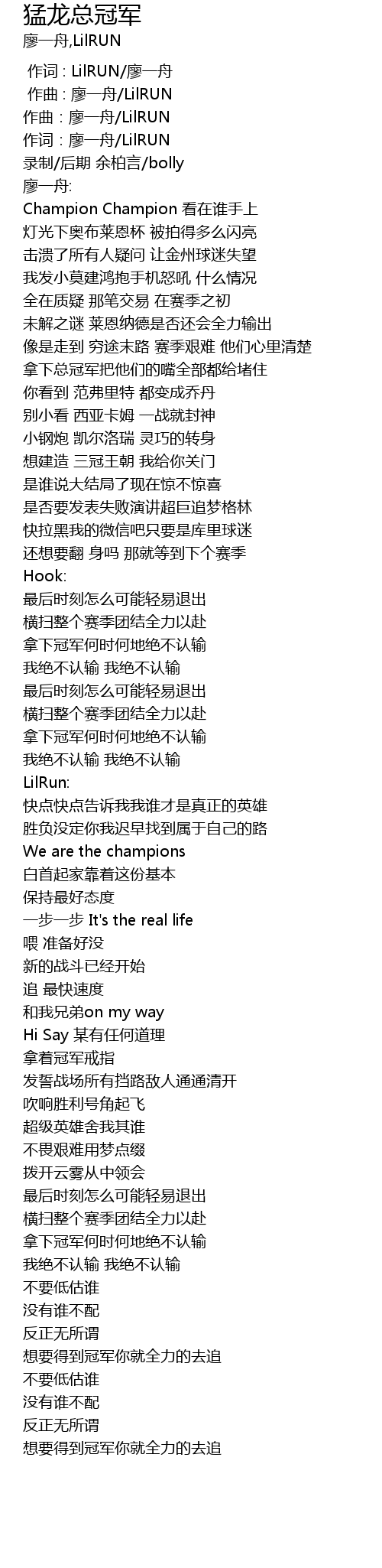 | [00:11.328] | Champion Champion 看在谁手上 |