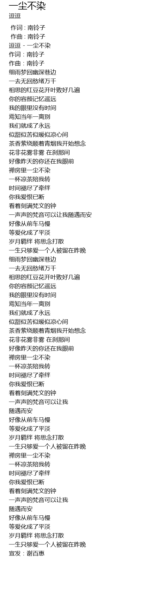 | [00:12.185] | 逗逗 - 一尘不染 |