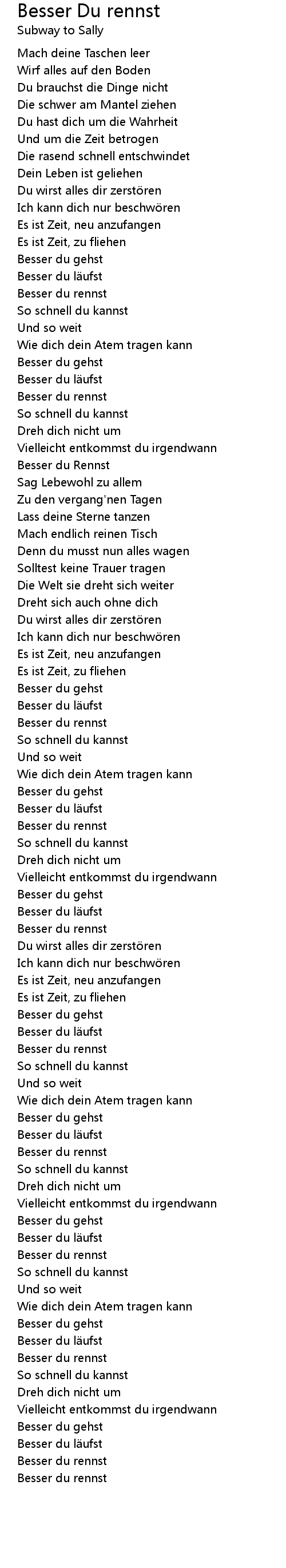 | Song | Besser Du rennst |