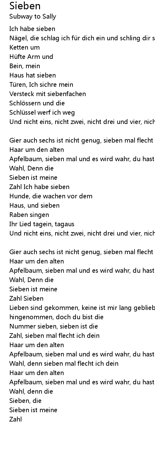 | Gier auch sechs ist nicht genug, sieben mal flecht ich dein | |