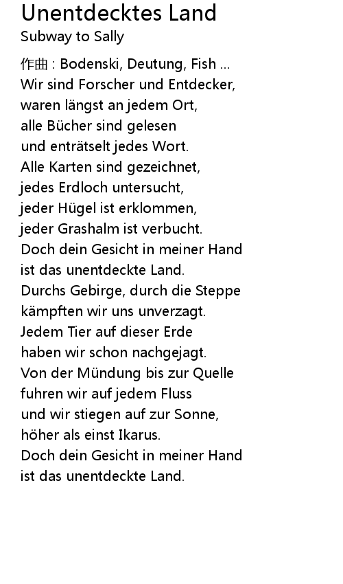 | Song | Unentdecktes Land |