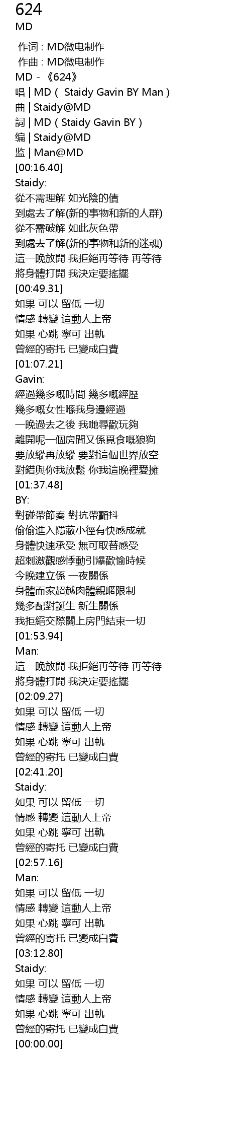 | [00:11.88] | 詞 | MD(Staidy Gavin BY) |
