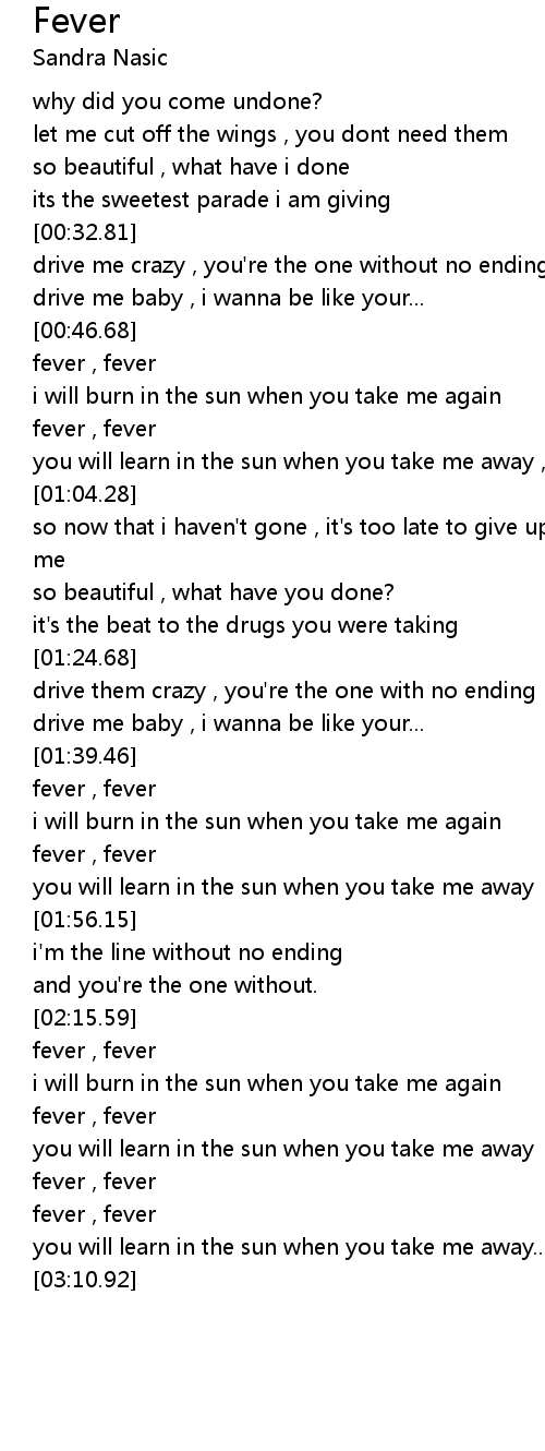 you will learn in the sun when you take me away , fever |