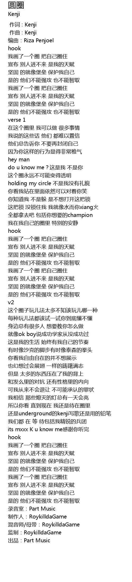 | [00:33.686] | 我画了一个圈 把自己圈住 |