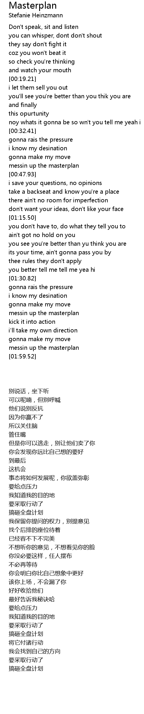 messin up the masterplan |