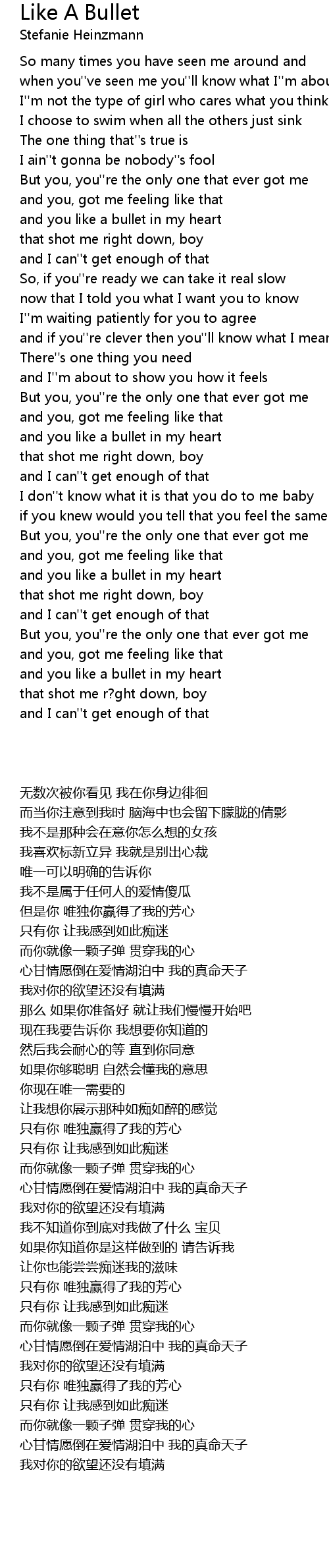 and you like a bullet in my heart |