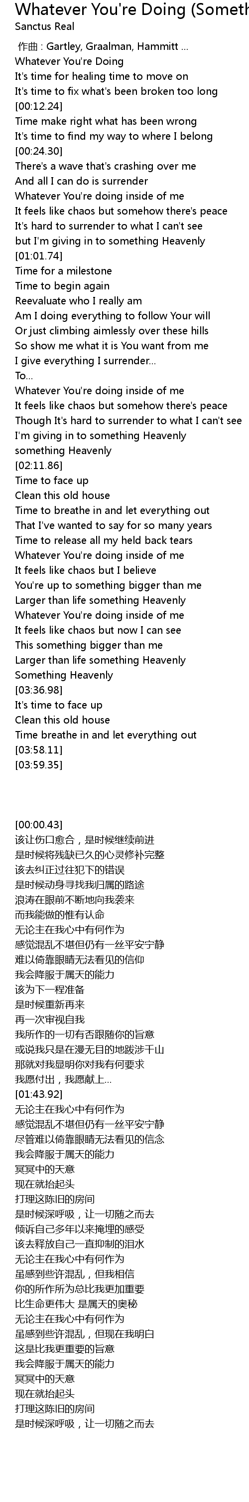 | [00:43.24] | It feels like chaos but somehow there's peace |