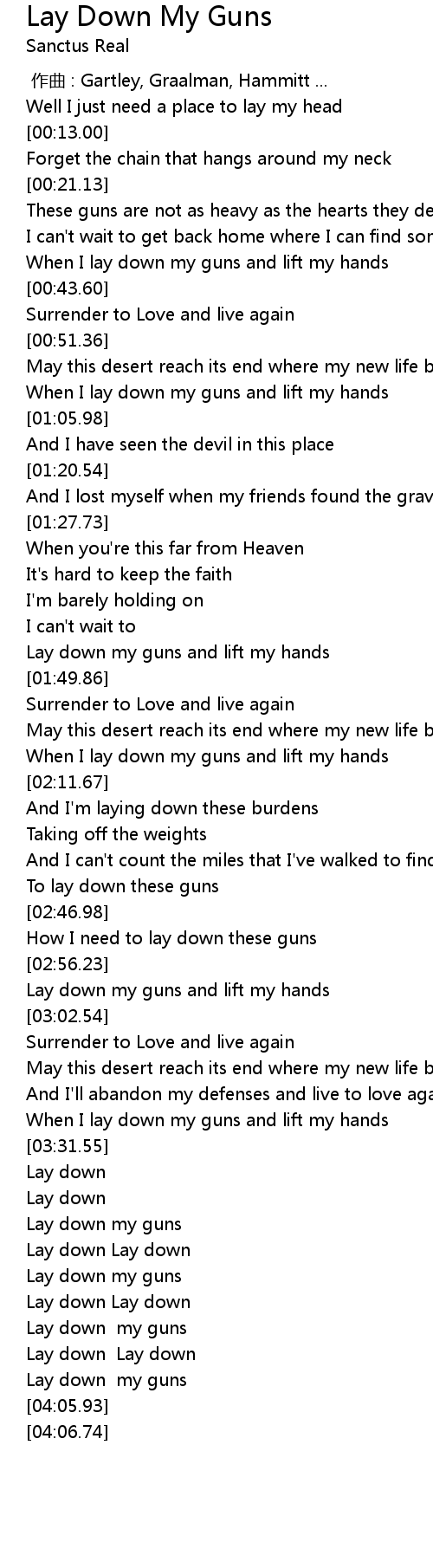 | [00:37.28] | When I lay down my guns and lift my hands |