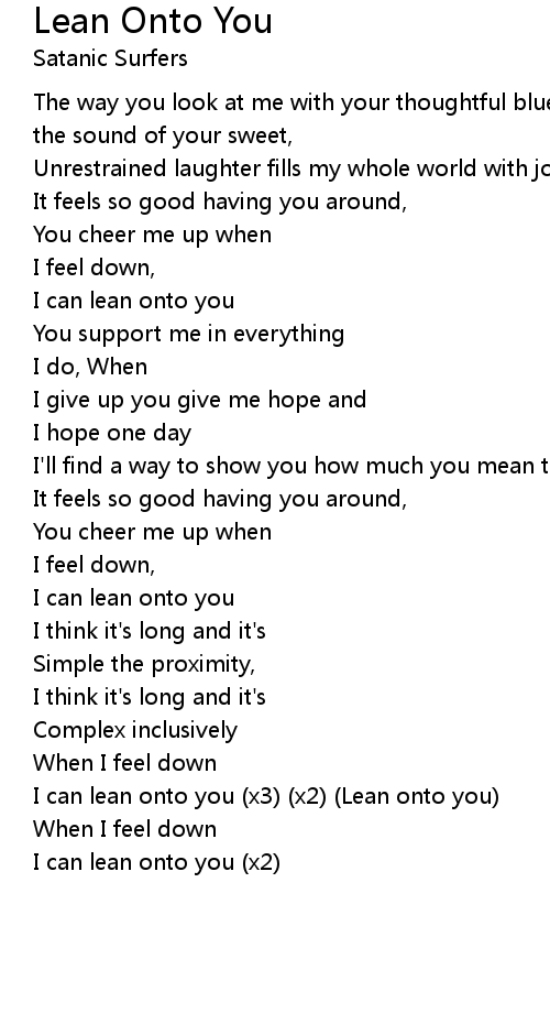 I can lean onto you (x3) (x2) (Lean onto you) |