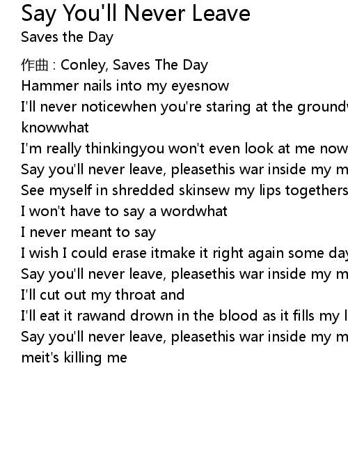 | Say you'll never leave, pleasethis war inside my mind is killing meit's killing meit's killing me |