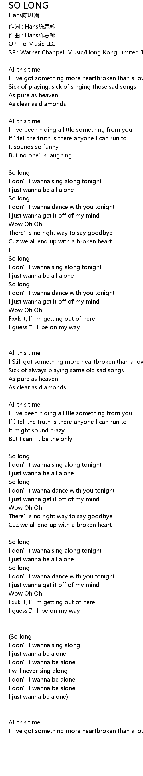 | SP : Warner Chappell Music Hong Kong Limited Taiwan Branch | |