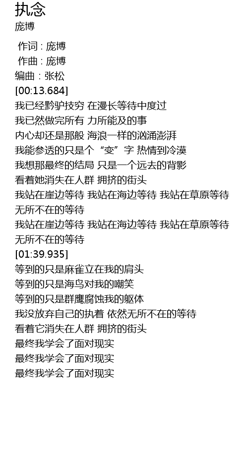 | [02:20.436] | 我没放弃自己的执着 依然无所不在的等待 |