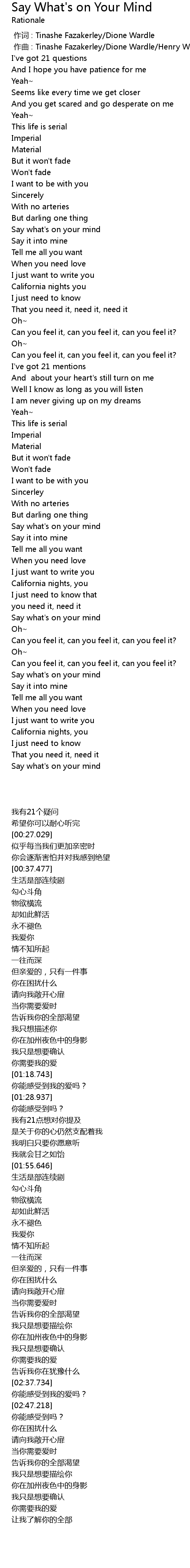 | [00:00.000] | zuo ci : Tinashe Fazakerley Dione Wardle |