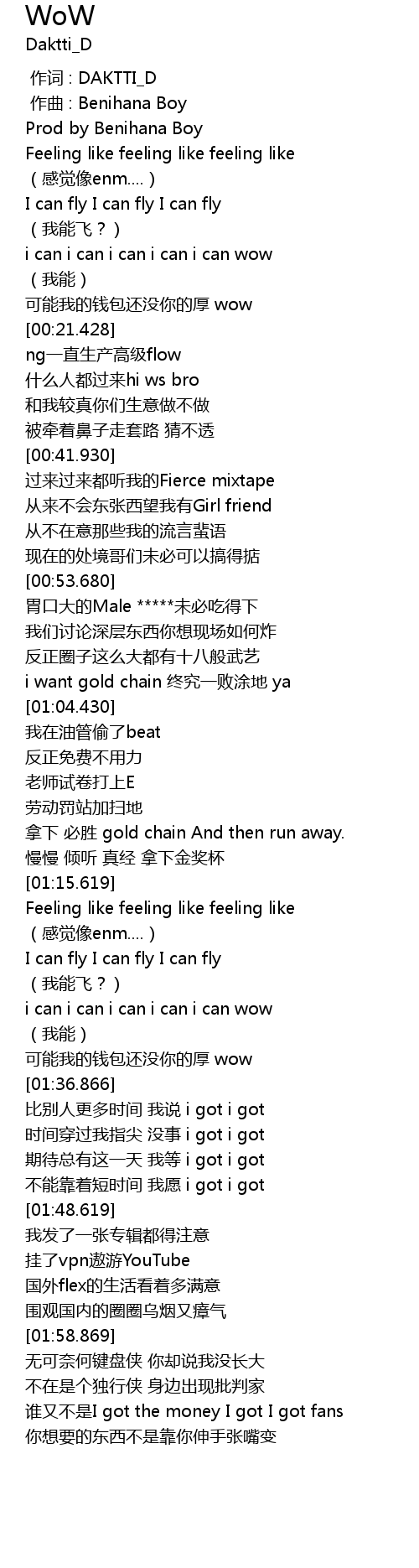 | [01:01.929] | i want gold chain zhong jiu yi bai tu di ya |