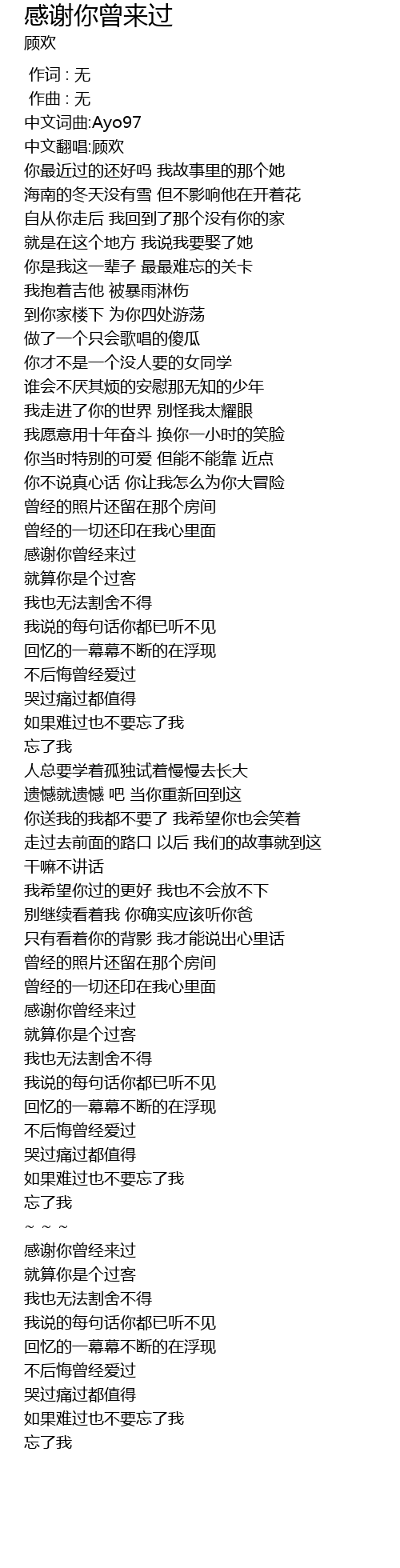 | [00:05] | 中文翻唱:顾欢 |
