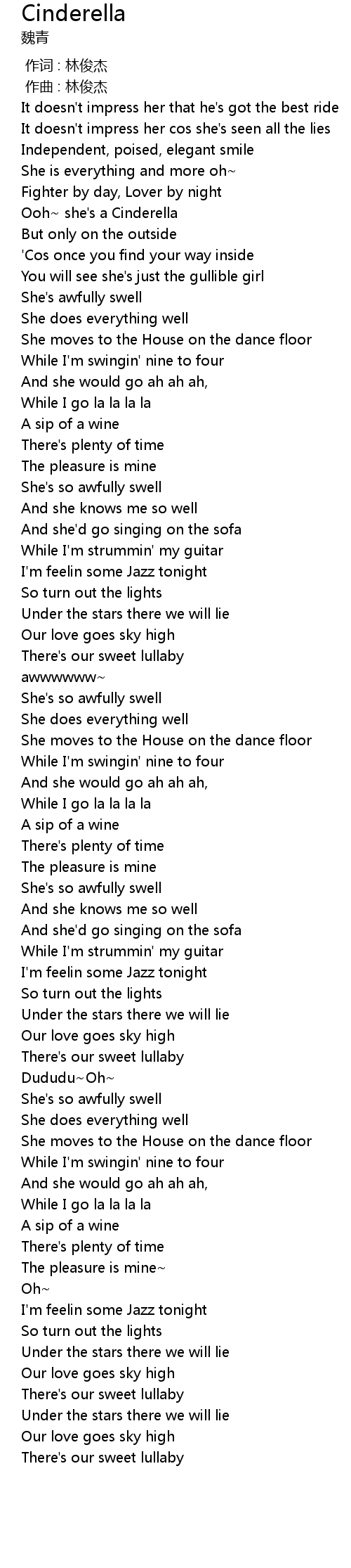 | [00:48.438] | Ooh she' s a Cinderella |