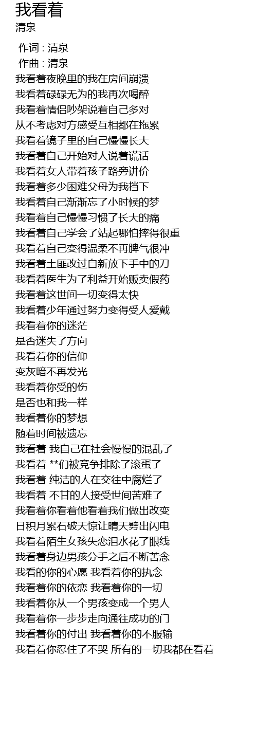 | [01:35.292] | 我看着 我自己在社会慢慢的混乱了 |