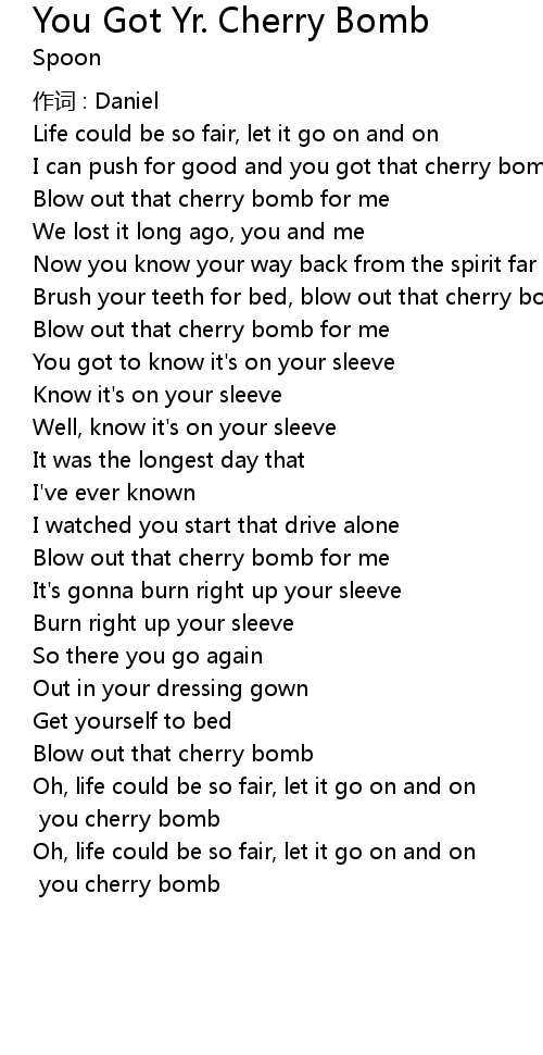 | I could pay the man, Incomprehensible you cherry bomb | |