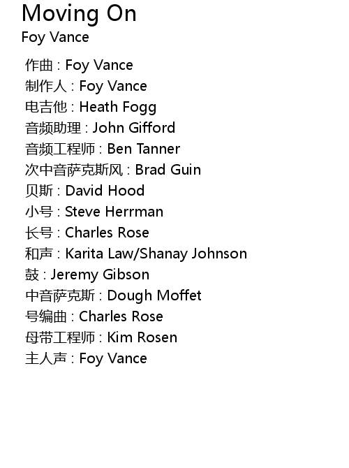 | [00:00.00-1] | 制作人 : Foy Vance |