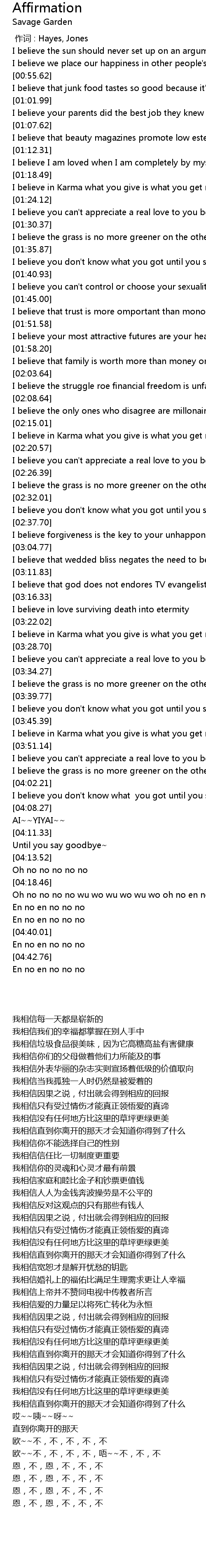 | [03:46.64] | I believe in Karma what you give is what you get returned |
