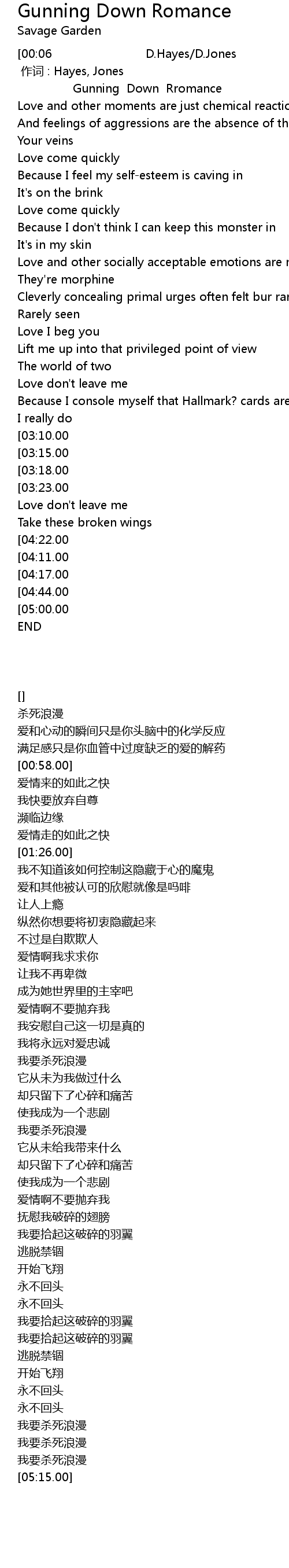 | [03:26.00][03:10.00] | I' m gunning down romance |