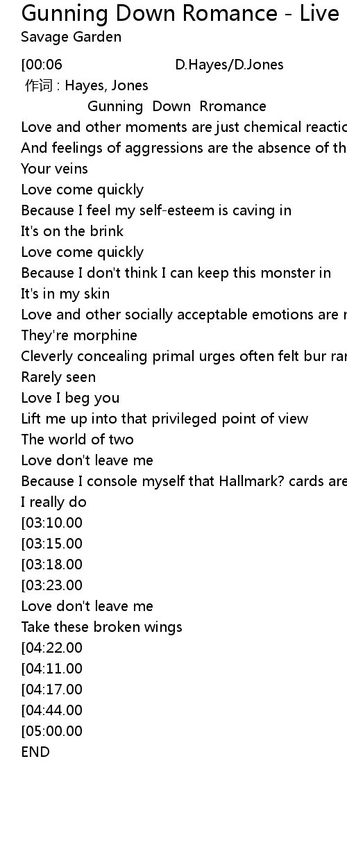 | [03:26.00][03:10.00] | I' m gunning down romance |