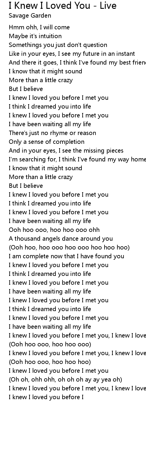 I Knew I Loved You - Live Lyrics