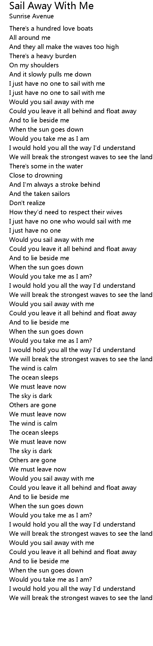 Would you sail away with me |