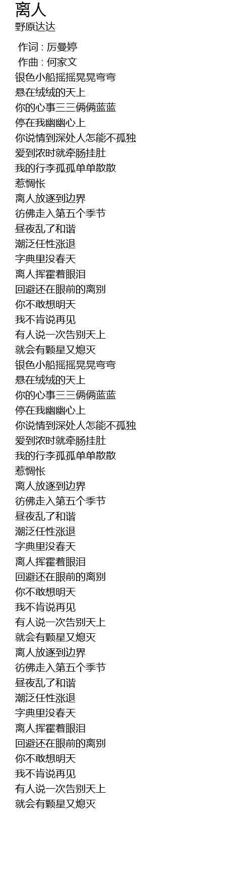 | [02:47.554] | 我的行李孤孤单单散散 |
