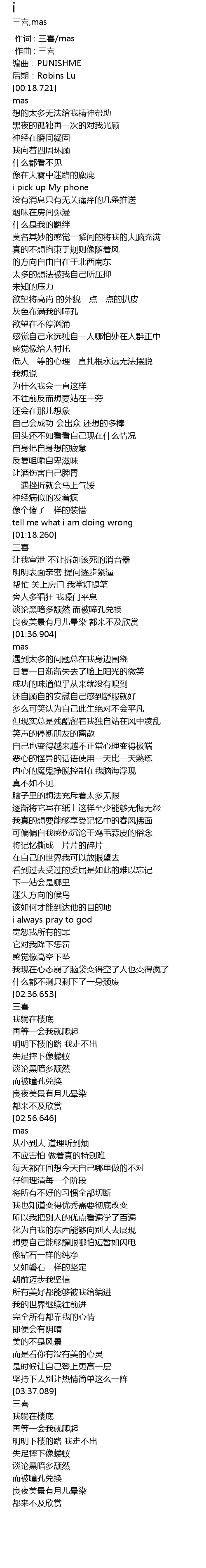 | [00:00.000] | 作词 : 三喜/mas |