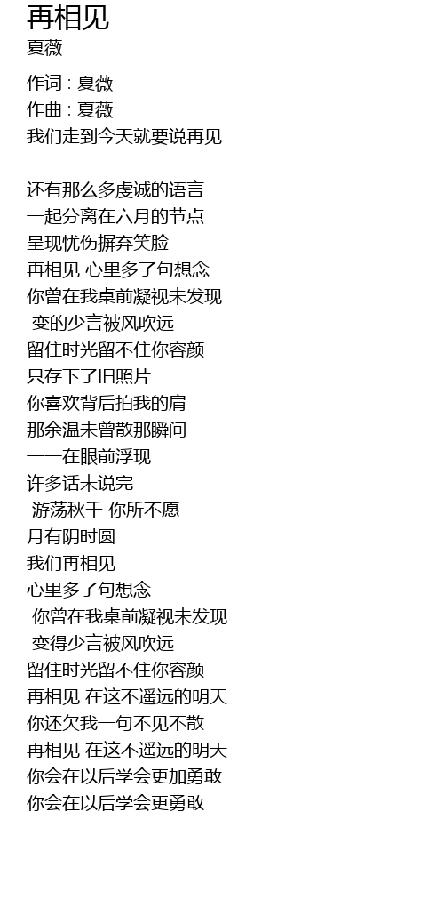 | wo men zou dao jin tian jiu yao shuo zai jian | |