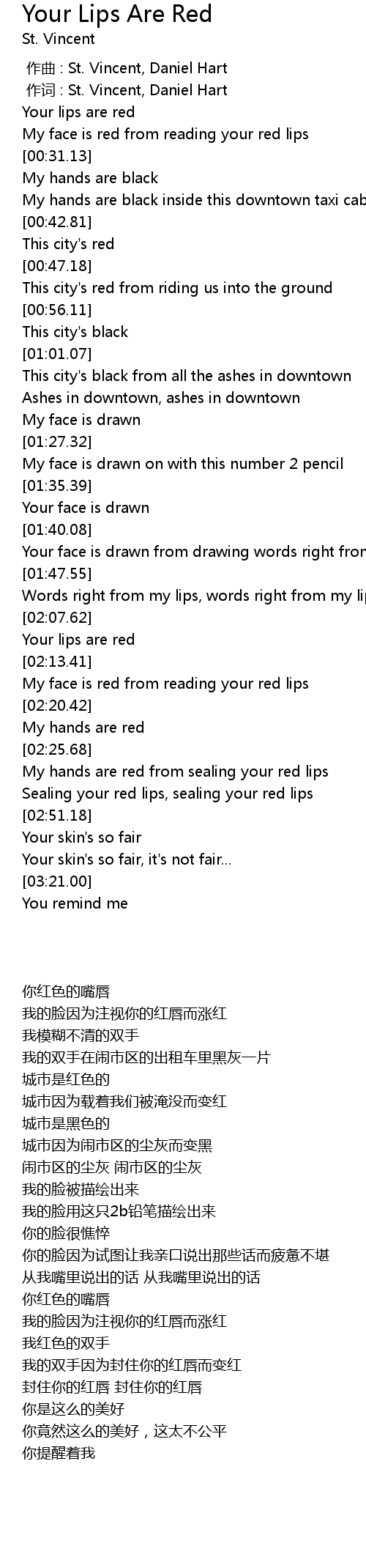 | [02:34.86] | Sealing your red lips, sealing your red lips |