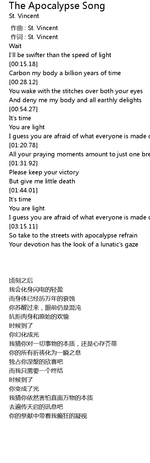 | [00:01.00] | 作词 : St. Vincent |