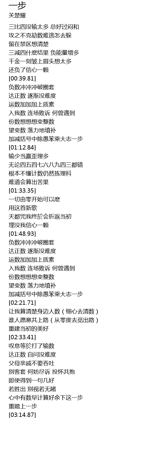 | [02:13.38] | 加减括号中除愚笨乘大志一步 |