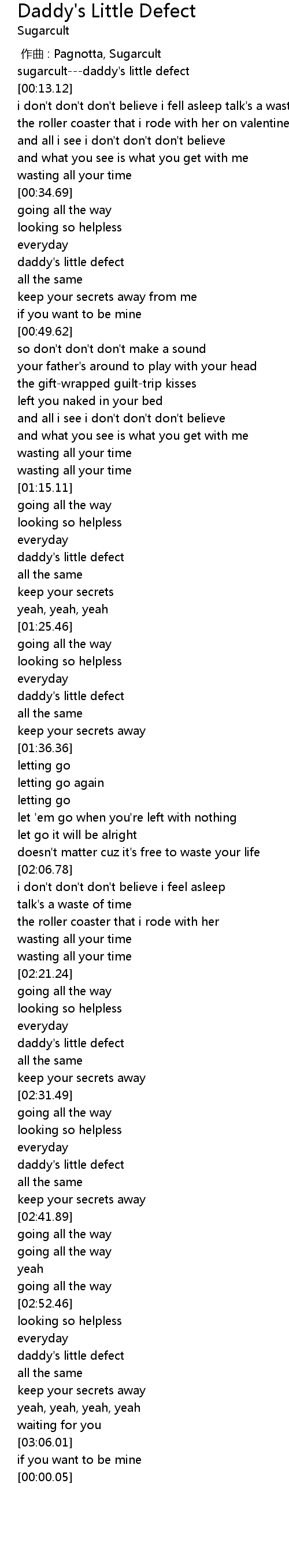 | [00:11.51] | sugarcult---daddy's little defect |