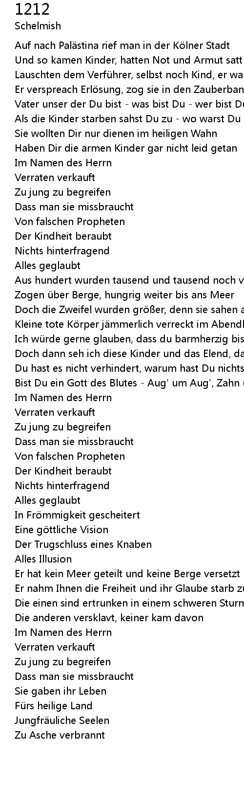 | Als die Kinder starben sahst Du zu - wo warst Du | |
