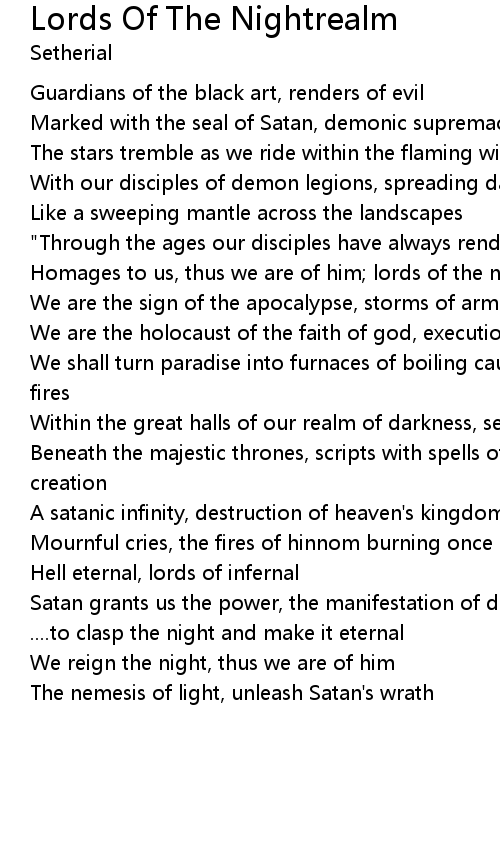 Homages to us, thus we are of him; lords of the nightrealm" |