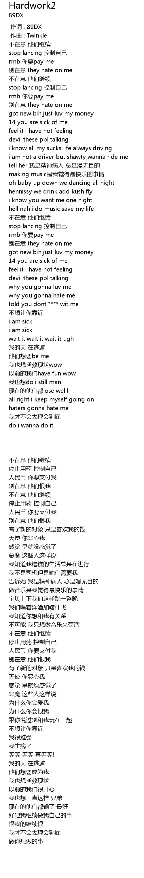 | [00:00.000] | 作词 : 89DX |