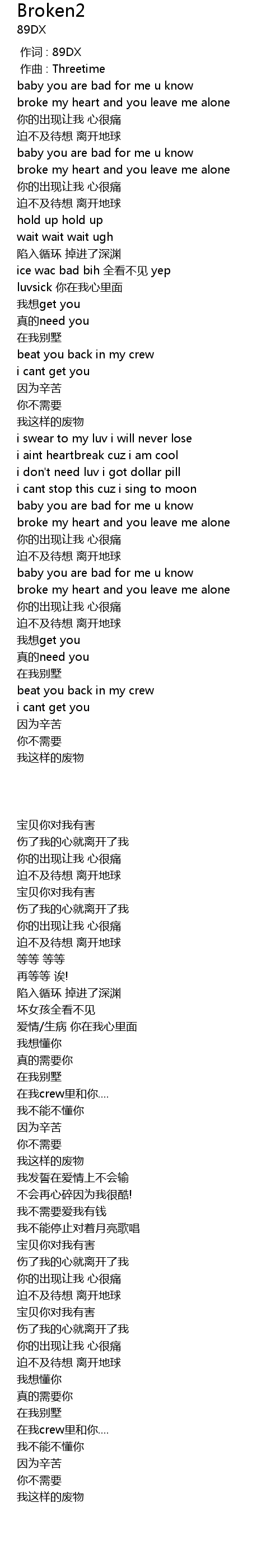 | [00:00.000] | 作词 : 89DX |